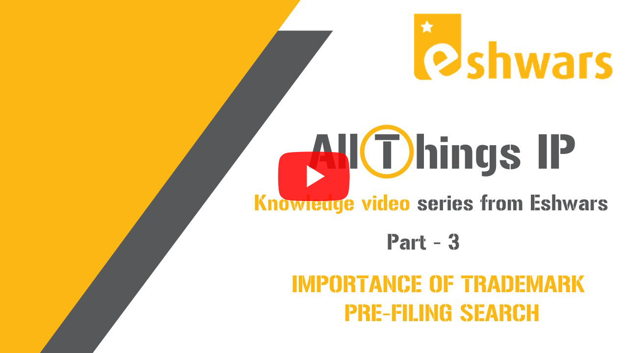 “We at Eshwars are delighted to share our next video from our AllThings IP, knowledge video series. In this video titled "Importance of Trademark Pre-filing search", we have covered the importance of conducting a search for a trademark which is adopted for business. Brand owners need to exercise due-diligence prior to filing a TM Application by conducting an online Trademark search at www.ipindia.nic.in. This will help them in strategizing the application and saves time and cost. We also request you to subscribe to our YouTube channel– Eshwars to receive regular updates. In case of any queries, feel free to write us at: "ip@eshwars.com".